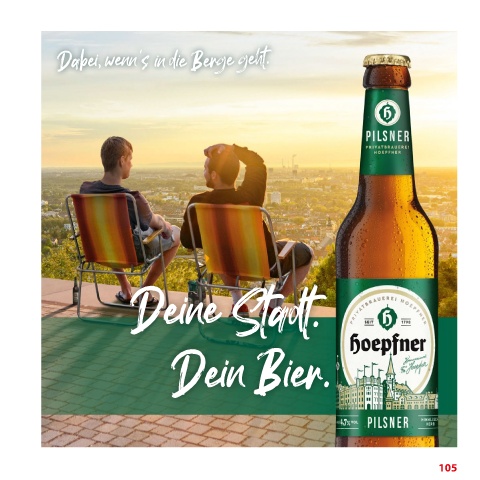 Berge geht. Dabei, wenn‘s in die die Berge geht. wenn‘s in Deine Stadt. DeinBier. 105